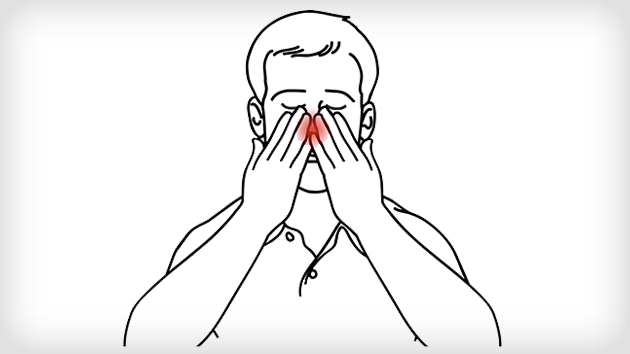 causes pain between the eyes, across the nose